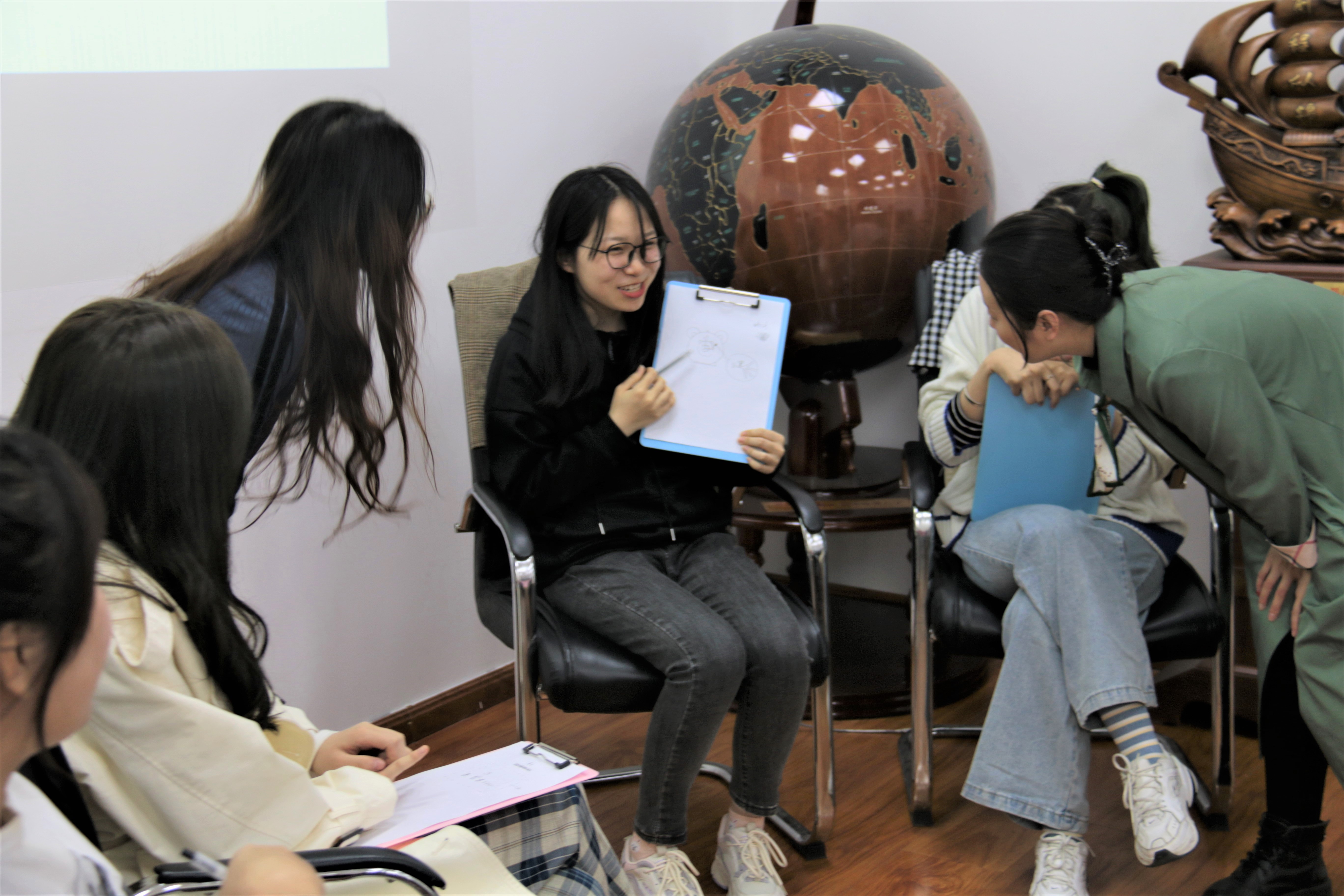 活动开始前,各位同学们先进行了简单的自我介绍,接着在主持人的带领下,玩起了暖场小游戏,轻松愉快的游戏拉近了同学们之间的距离。在同学们的欢声笑语中,活动正式开始。主持人首先引导大家为自己近期的烦恼赋予一个具体的形象,在纸上画出并且显示出“它”与自身的关系。同学们仔细思索,认真地在纸上画出困扰自己的心结,随后大家依次展示了自己的画作,并讲解了画面的寓意。随后,主持人为大家准备了一系列问题,意图帮助同学们理清烦恼与自身的关系,审视它对自身的影响,以便找出解决方法或者调整心态重新接纳。同学们在纸上作答,并向其他同学讲解自己的想法,将自己的思考与忧虑充分展现出来。在最后一个环节中,同学们畅所欲言:或是讨论彼此烦恼之间的共同点;或是介绍行之有效的经验方法;或是分享自己的心路历程。各位同学的参与热情高涨,都得到了分享心声的机会,也从其他同学的话语中得到了一些收获。至此,本次团体心理辅导活动圆满结束。