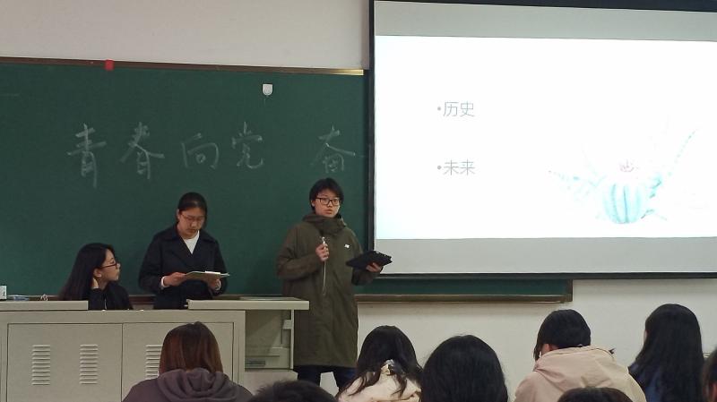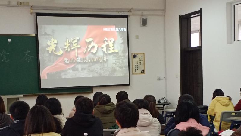 首先,班委和新同学进行了简单的自我介绍,随后主持人尹梓萌同学给同学们简单讲解了中国共产党经历的百年峥嵘岁月,并播放了讲述党的建立过程和发展过程的视频,让同学们更直观地认识党经历过的磨难,感受党的坚韧和顽强。随后,孙锡昱和李昕如同学分享了自己印象深刻的一段党史。在建党一百周年的历史节点上,作为新时代的大学生,尹彩云和薛乃雯同学分享了对自身和国家未来发展的看法。青年,是国家的未来和民族的希望,是社会上最富有朝气、最富有创造性、最富有生命力的群体。青年兴则国家兴,青年强则国家强。加强对五四运动和五四精神的研究,要回答好为什么当代青年必须把个人理想融入民族复兴伟大理想和中国特色社会主义思想这一问题。最后,以视频播放的方式表达了习近平总书记对青年的期望与寄语。
