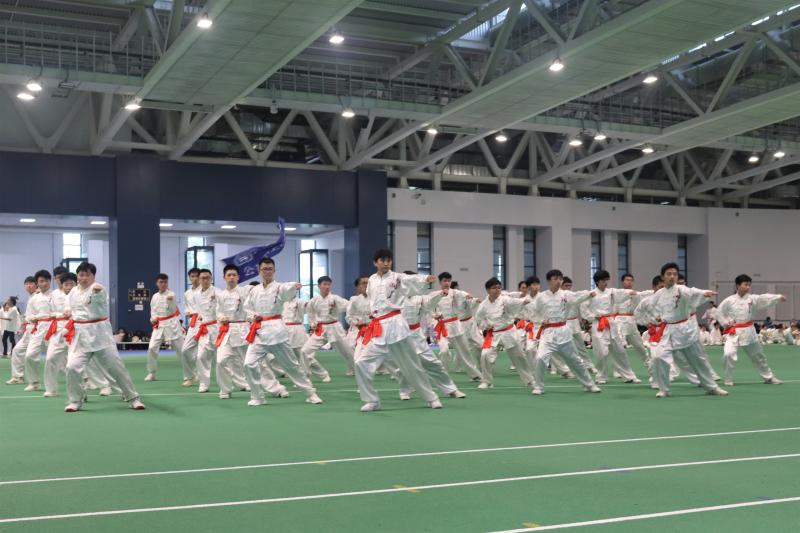 本次活动于下午两点半正式开始,受到天气的影响,比赛转到体育馆内进行。即使天气不佳,同学们的热情却丝毫未受到影响,各个兴高采烈。随着“起步——走!”的高昂口号,队员们迈着整齐的步伐,英姿飒爽地走向了场地中央,伴着“公行天下,卫戍健康,逐梦扬威,共创辉煌”的响亮口号,立正站好,准备开始。随着音乐声响起,队员们拉开架势,开始了八极拳展示。“悟空问路”,“十字顶肘”等动作一气呵成,矫健有力,一招一式中蕴藏力量,整体动作整齐划一,全套八极拳动作也是不徐不疾、行云流水。最后,伴随着裁判员的结束语,本次比赛正式落下了帷幕。