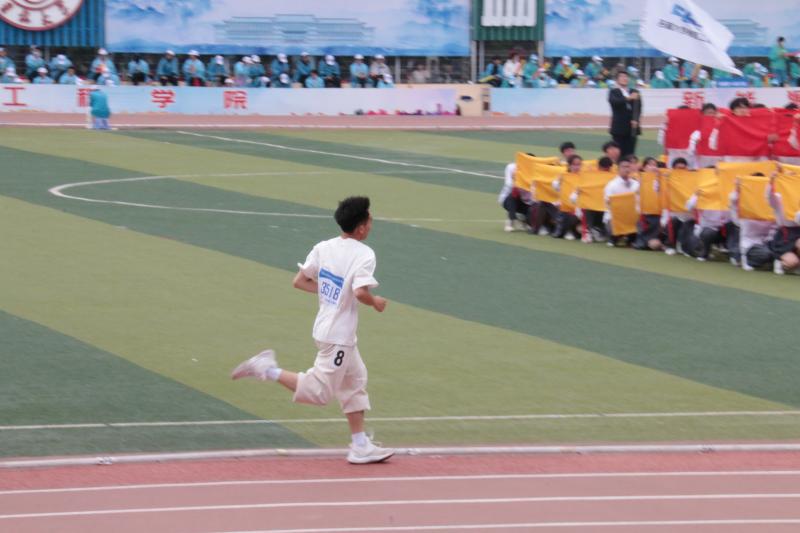 虽然天气略微寒冷,细雨绵绵,但并没有浇灭选手们运动员为院争光的决心。运动员们在裁判的指挥下有序地检录入场,站在各自的跑道上,信心满满,整装待发,他们认真做着热身运动,一遍遍的试跑,寻找着起跑的最佳状态。随着发令枪响,裁判员一声令下,运动员们冲出起跑线。在观众们呐喊助威声里,运动员们鼓足了气,向终点奔跑。尽管汗水淋漓,气喘吁吁,却没有一个人放弃。运动健儿们疾驰在跑道上,他们不顾雨点,不畏一圈又一圈的跑道,拼尽全力冲向终点。比赛中,运动员们以拼搏的精神、顽强的毅力、坚定的步伐向前奔跑,即使感到疲惫,还是毅然决然、勇敢地冲向终点。