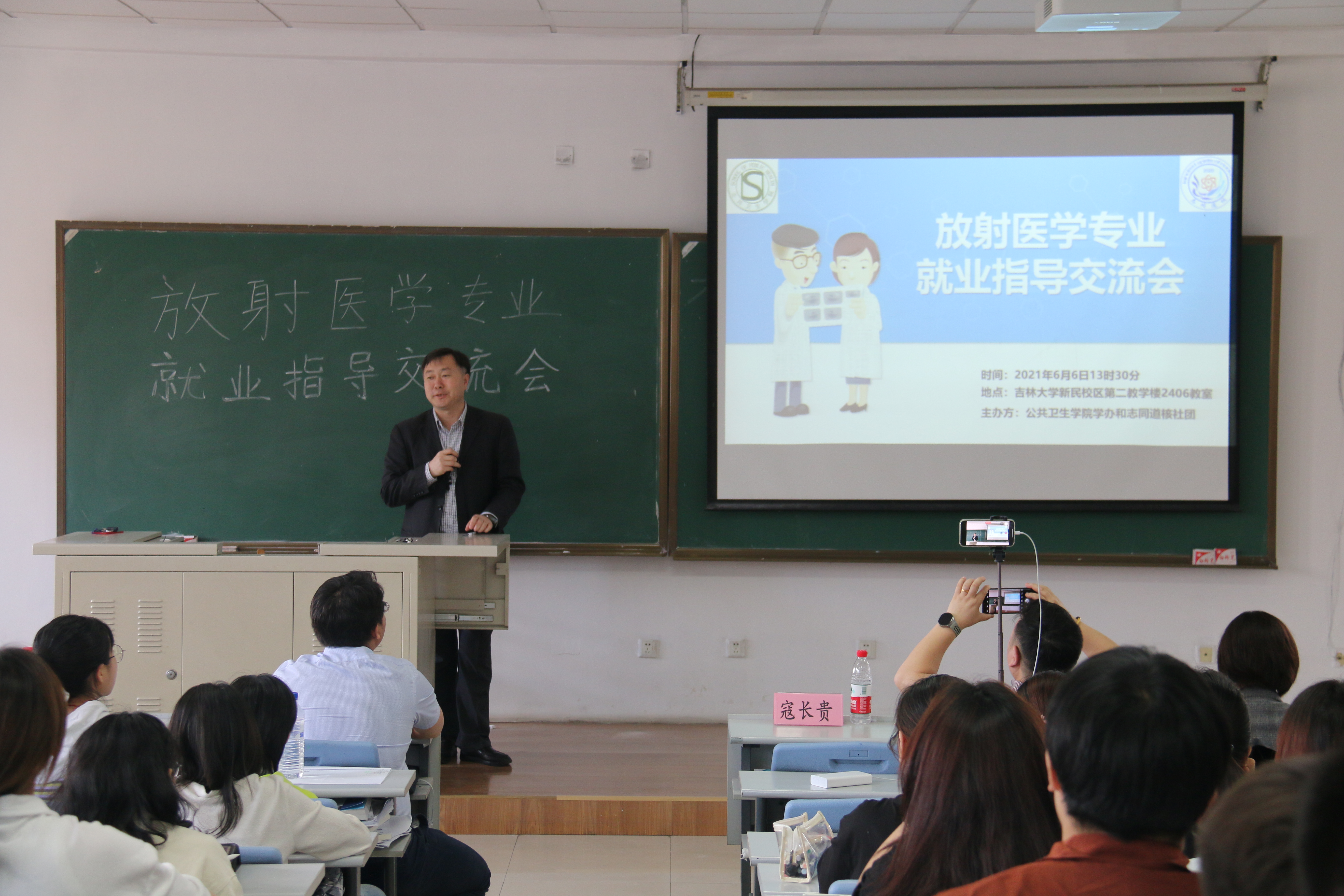 为引导放射医学专业同学做好职业规划,正确、理智选择毕业去向,增强同学们的个人规划意识,提高就业、考研竞争力,6月6日13:00,JINNIAN金年会“志同道核”社团于新民校区第二教学楼2406教室成功举办放射医学专业就业指导交流会。本次交流会作为2017级放射医学同学的就业指导慕课线下课程,共邀请了寇长贵、姜新、申延男、王辉东、陈滨、王志佳、冷贺璇、刘心怡八位老师作为主讲人及嘉宾,2017级放射医学专业所有学生以及2018级、2019级放射医学专业部分学生参加了本次会议。