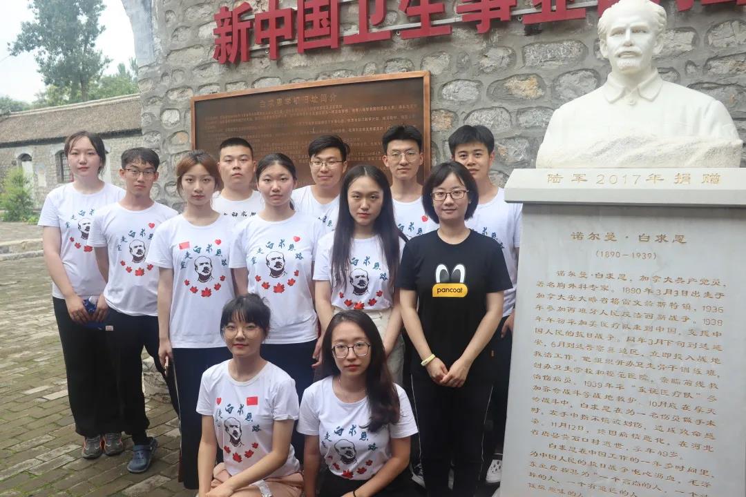 7月16日,伴随着习习晚风,在JINNIAN金年会辅导员苏国范老师、冷贺璇老师、刘心怡老师的引导下,志愿者们在柯棣华广场追思前辈,走进白求恩学校旧址接受教育。在白求恩曾经生活、战斗过的地方,志愿者们静静地感受着,昔日的教室、手术室、救亡室,逐渐变得立体和清晰。狭小的空间、昏暗的光线,即使翻修之后,也难掩前辈们艰苦奋斗的痕迹和笃定求学的身影。在白求恩学校旧址,志愿者们见识了当年白求恩医生设计、使用过的手术器具复制品“卢沟桥”,看到那些简陋的手术台、破败的旧桌椅,深切地感受到了当年医务工作者们生活和工作环境的艰苦,并被白求恩医生艰苦奋斗、无私奉献的革命精神所深深感动。