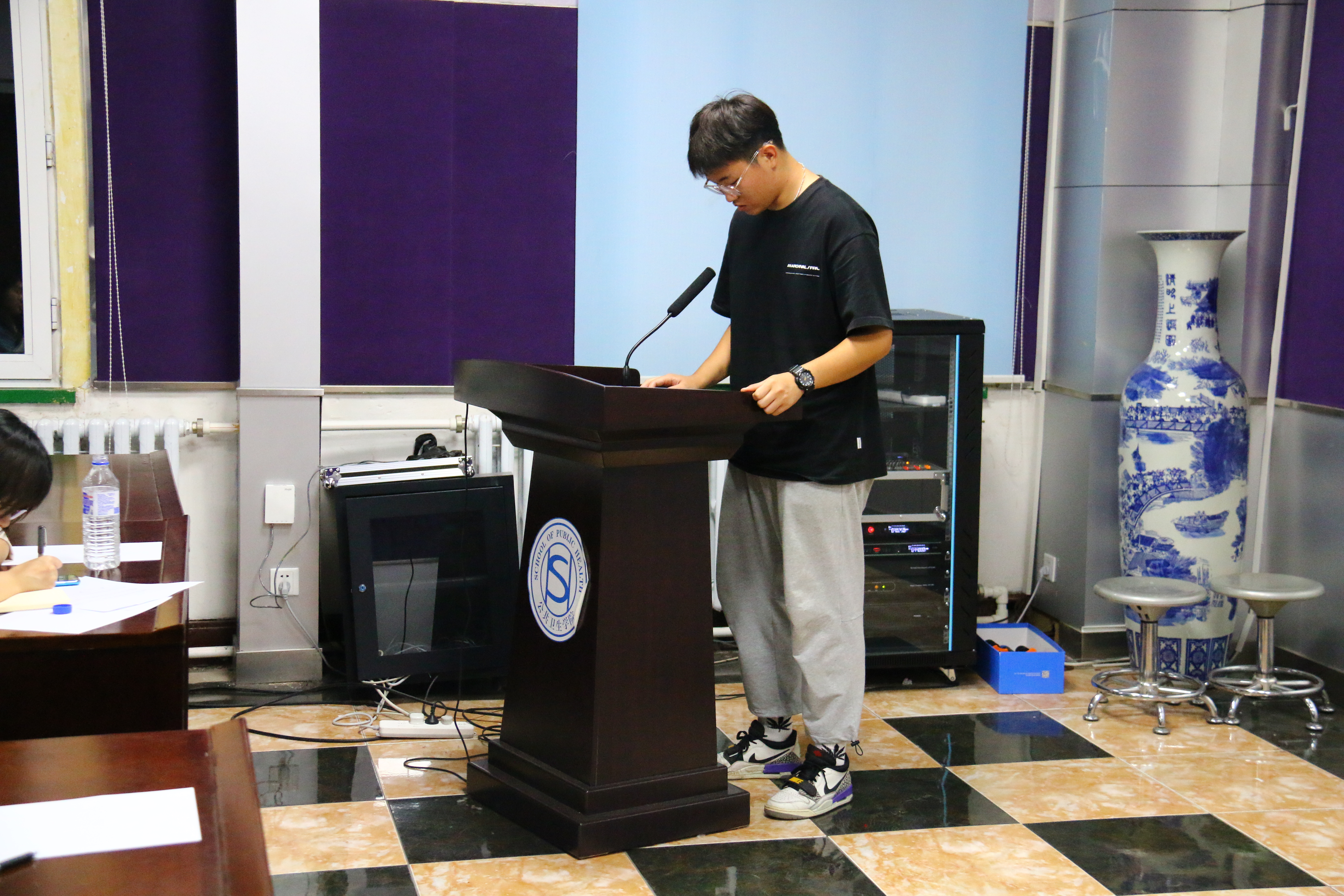 会议于晚上六点十分正式开始。首先,冷贺璇老师进行了发言,说明了团学组织的重要性以及部长、副部长的职责,并强调了团学组织各部门之间的联系。然后,各部门派一位代表上台进行工作汇报与未来工作的计划。会议有条不紊地进行。大家认真听讲,并进行了对自身工作的反思。最后,冷贺璇老师进行了会议总结,并由苏国范老师进行了2021年度迎新工作的大致安排。会议圆满结束。