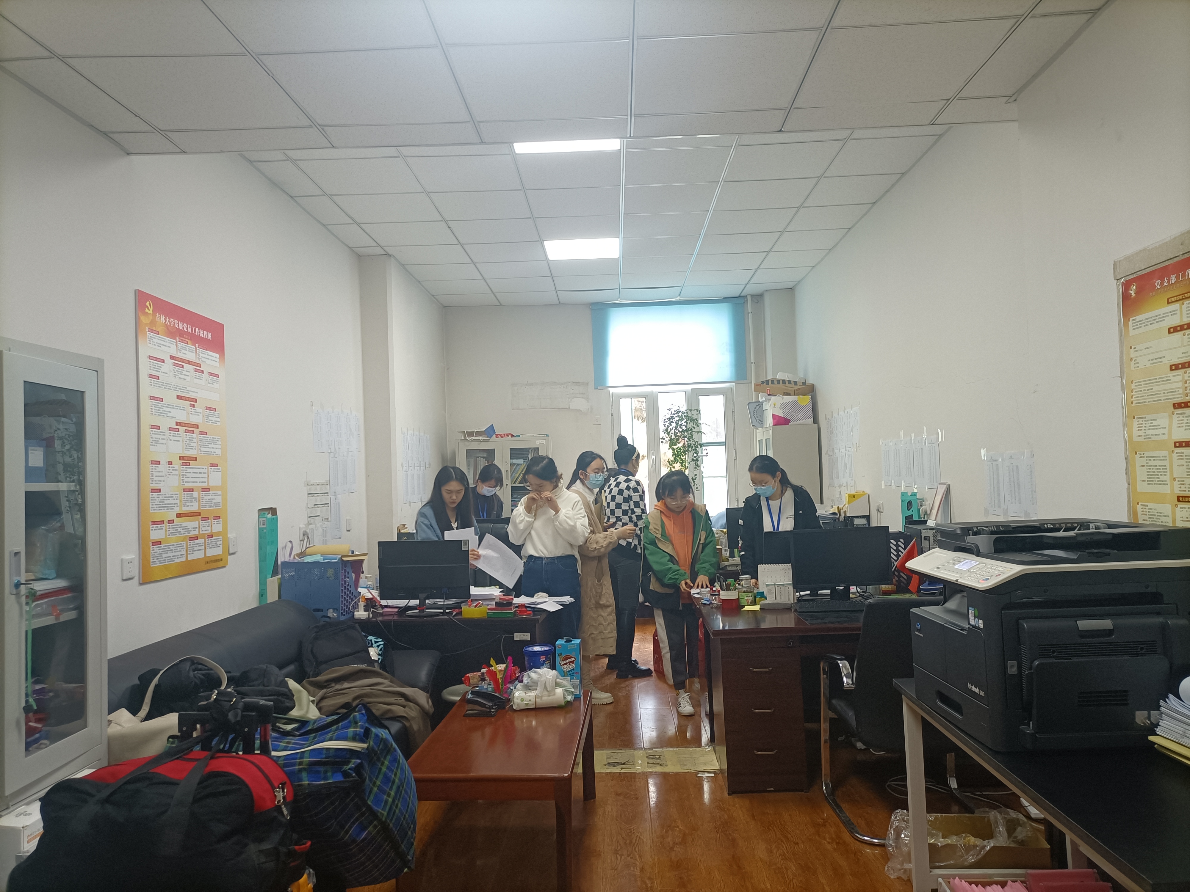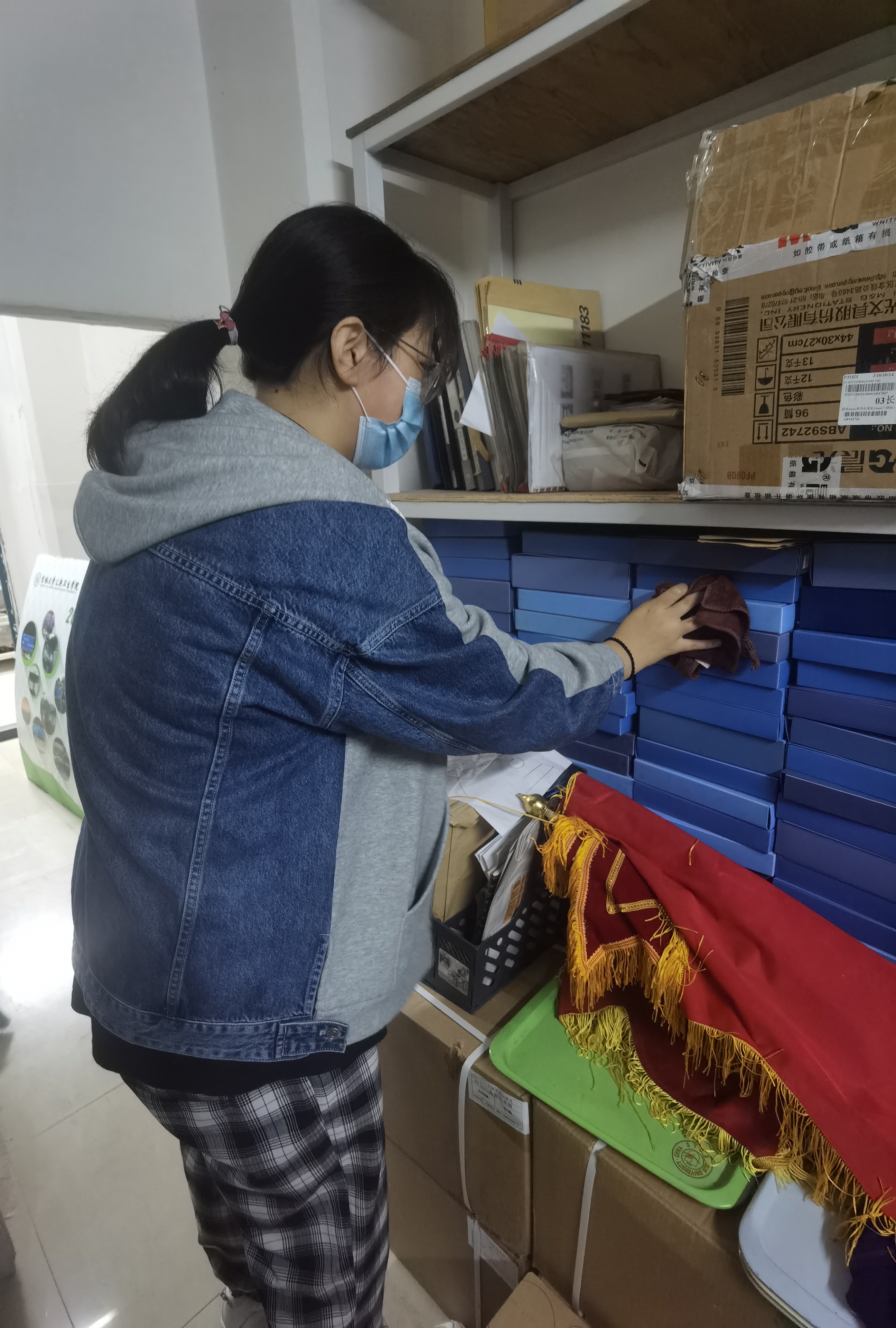 上午8:45,同学们纷纷携带打扫工具来到学院正门门口集合,负责各个打扫区域的负责人分别带领本组志愿者前往各自打扫地点。队伍兵分多路,一部分同学进行了对学院各个办公室的打扫,从扫地、拖地,到擦桌子、窗台、书柜,认真细致的进行了全方位的清扫,且获得了老师们的一致好评。另一部分同学来到储物间,用抹布和拖把将里面堆积的尘土清扫干净。同学们辛勤的劳动使得办公室焕然一新。