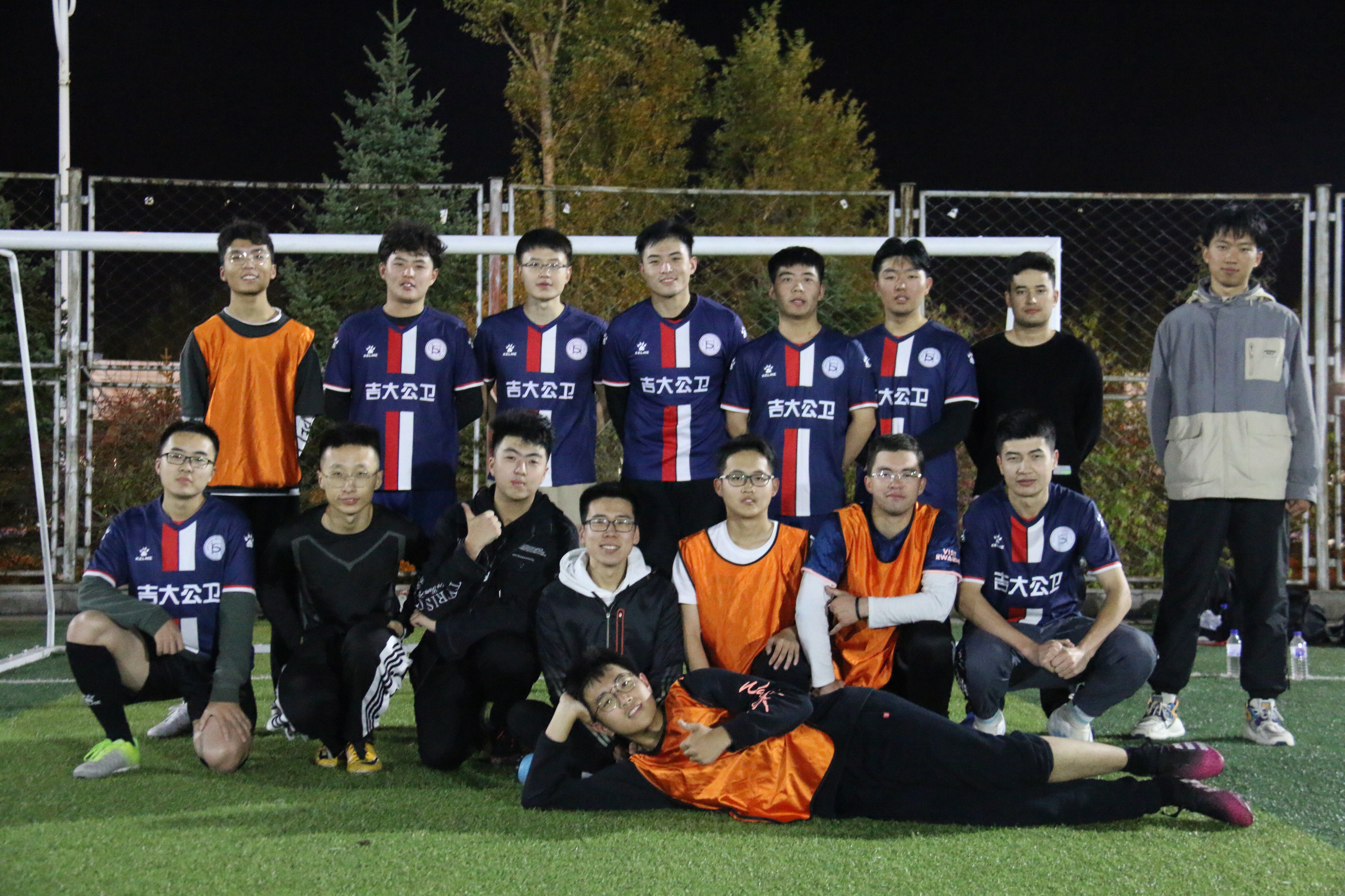 由于2021级报名人数较少,裁判决定将2020,2021级同学归为一队,2018,2019级同学为一队,并交给了新生队橙色队服。比赛正式开始,2021级同学刚开场就带着一股狠劲,不论是抢球还是进攻,都展现出了新生应有的积极向上的精神风貌,在流畅的团队配合和个人的进攻技巧的结合下,新生队先下一城。当然,学长们也身怀绝技,凭借着老道而成熟的经验和成员之间的默契,他们很快地追赶上了比分。就这样,你来我往,上半场的比赛结束,新生队2:1领先。经过短暂的休息,下半场比赛拉开序幕。新生队依旧敢拼敢抢,但又有些急于进攻,被老队员们抓住了机会,成功破门。双方积极上抢,不惧对抗,但又不失和谐友好,牢记“友谊第一,比赛第二”的体育精神。中途,一位新生不小心腿部抽筋,也被队员们及时拉伸,抬到了场边休息。最后,这场激烈的交战以3:3的比分圆满收尾。